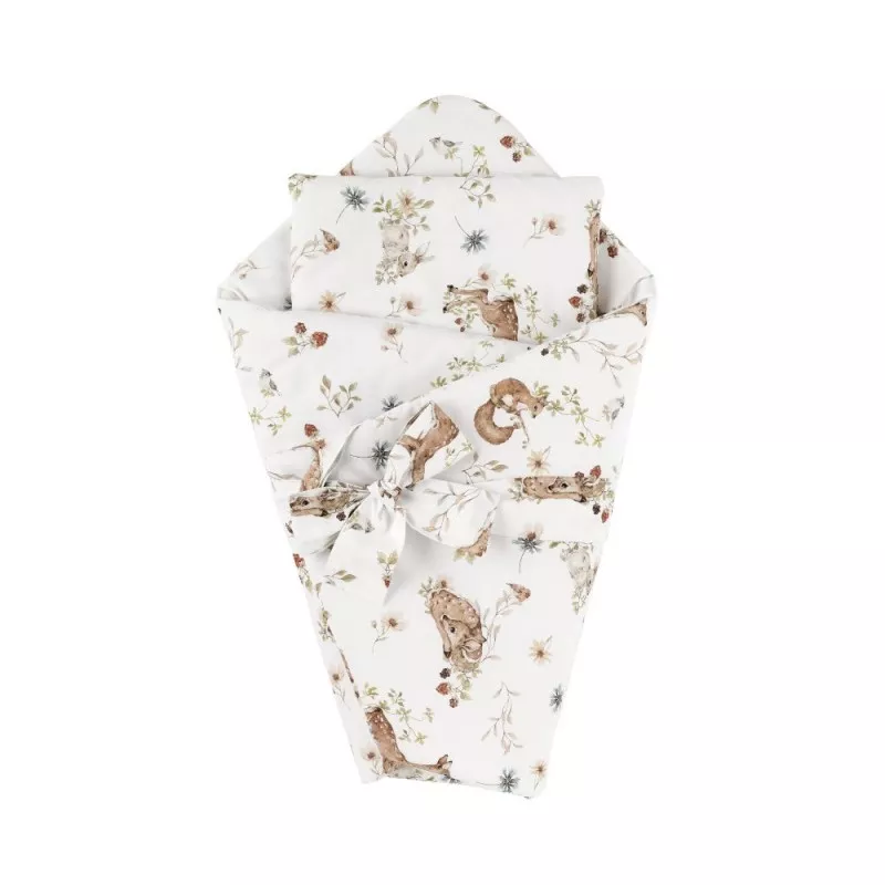 Dzięki wszytej zakładce na jednym z rogów kołderki i dodatkowej wstędze, z kołderki możesz stworzyć komfortowy rożek niemowlęcy, który jest nieoceniony w pierwszych dniach życia dziecka.