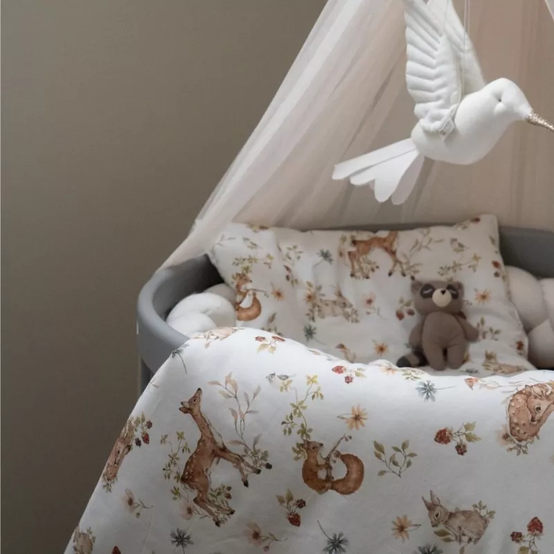 Wyjątkowa kolekcja pościeli dziecięcej wzór “polski las” to subtelny i elegancki print. Leśne zwierzątka, kwiatuszki i malinki na tle delikatnego ecru sprawi, że przestrzeń snu stanie się jeszcze bardziej przytulna.