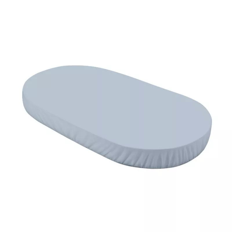 Bawełniane prześcieradło, skrojone na wymiar dużego materaca do owalnego łóżeczka 7w1.