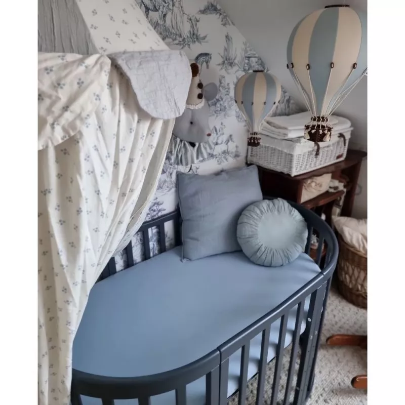 Prześcieradło z bawełny organicznej, dedykowane do dużego, owalnego łóżeczka 7w1