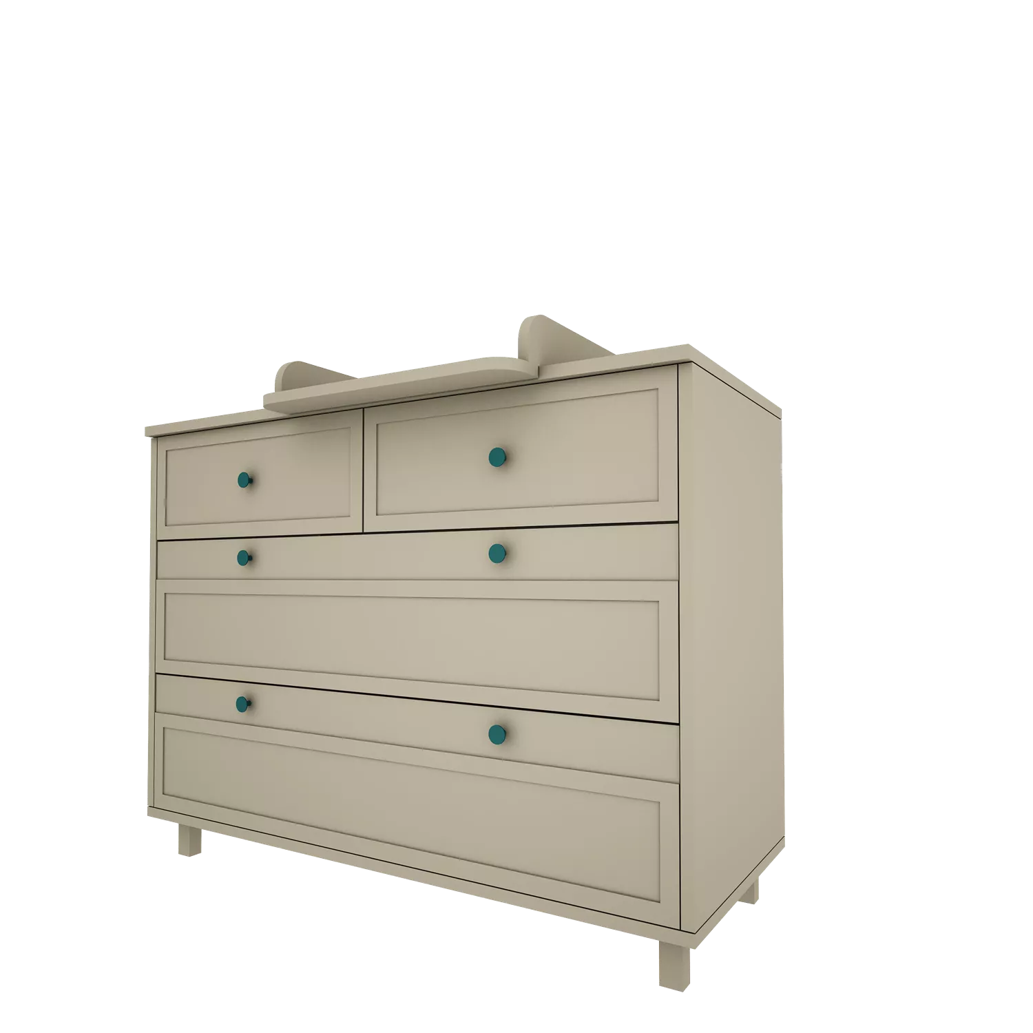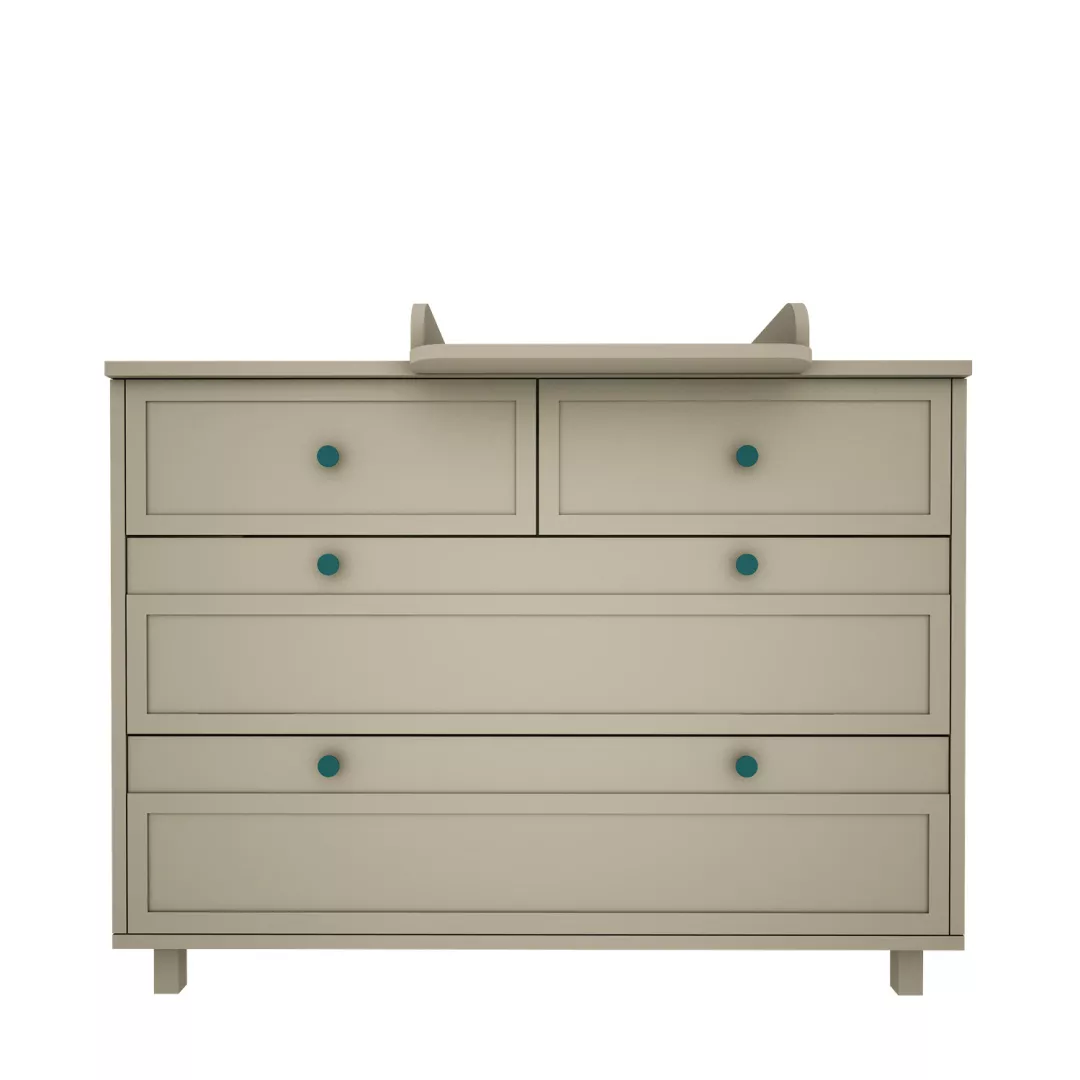Przewijak, w formie nakładki na blat komody, pozwala rodzicom w wygodny sposób wykonać wszystkie czynności pielęgnacyjne przy dziecku.