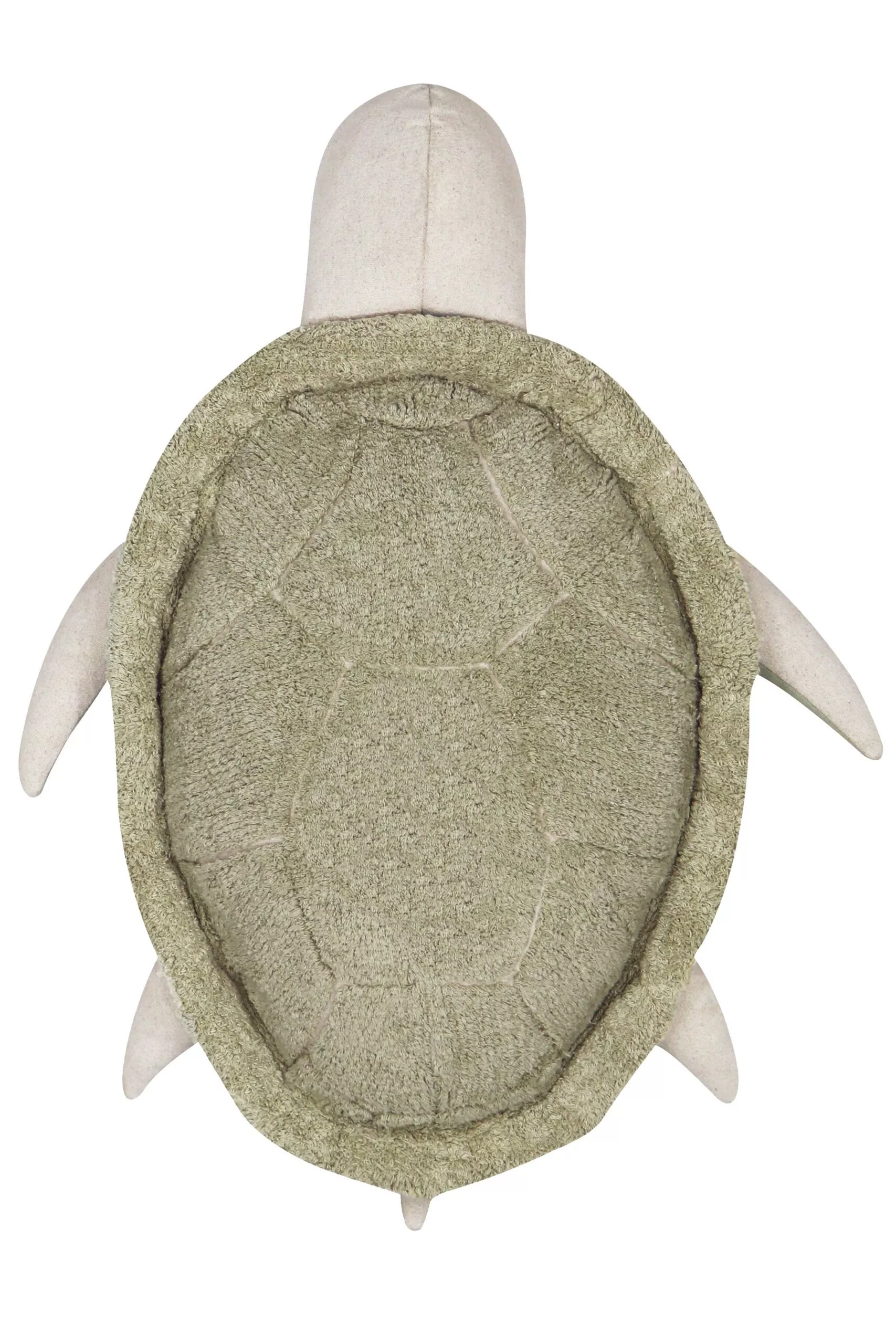 Dzięki skorupie z oliwkowozielonego, miękkiego bawełnianego włosia ułożonego w symetryczny wzór, ta pufa jest idealna dla najmłodszych do wspinania się. Z łapkami, głową i ogonem w naturalnym kolorze płótna oraz oliwkowozielonym płóciennym brzuchem, pokrycie pufy można prać: wystarczy wyjąć wewnętrzne wypełnienie za pomocą zamka błyskawicznego na dole.