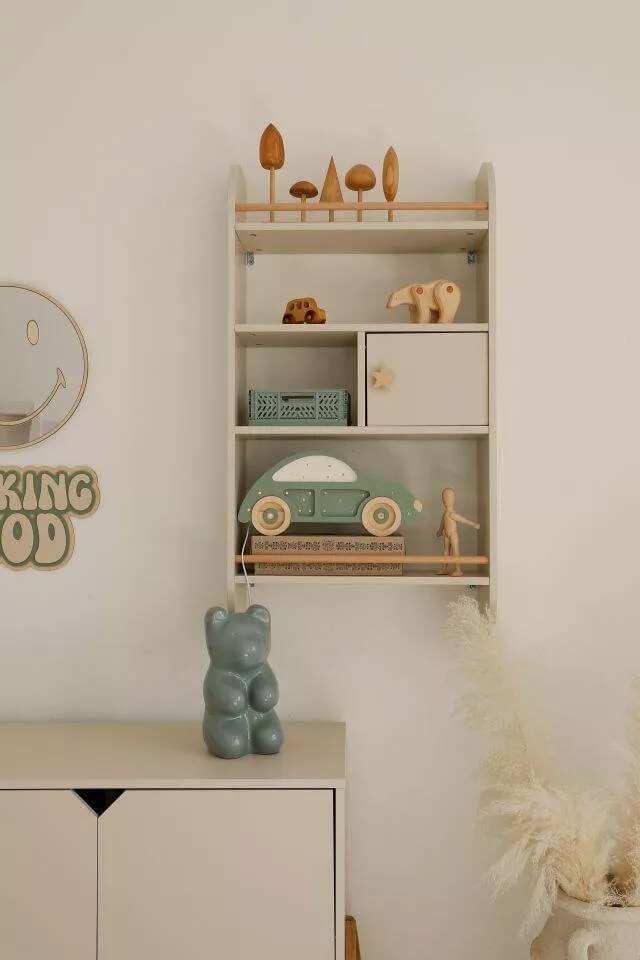 • można powiesić wysoko ścianie lub przy samej podłodze, umożliwiając dziecku swobodny dostęp do półki,