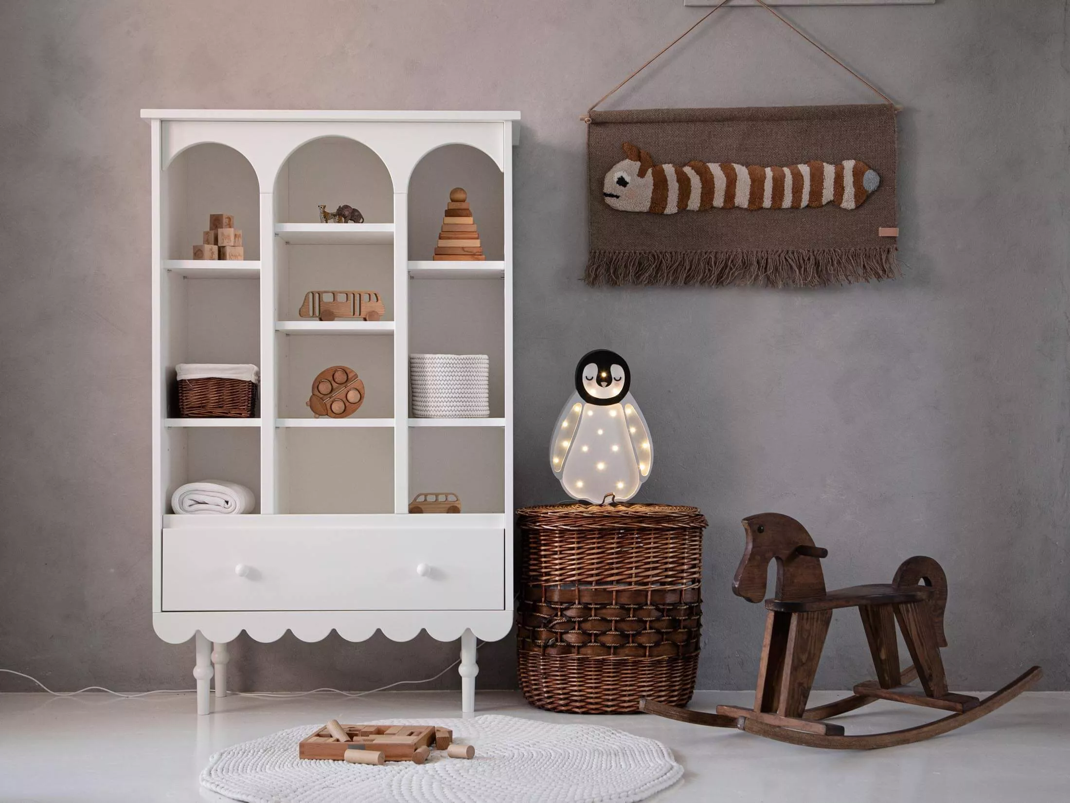 Dzięki solidnej konstrukcji i przemyślanemu designowi, regał nie tylko pięknie się prezentuje, ale także zapewnia bezpieczne i wygodne przechowywanie zabawek, książek i innych skarbów Twojego dziecka. To idealne rozwiązanie dla rodziców, którzy cenią wysoką jakość i niepowtarzalny styl.