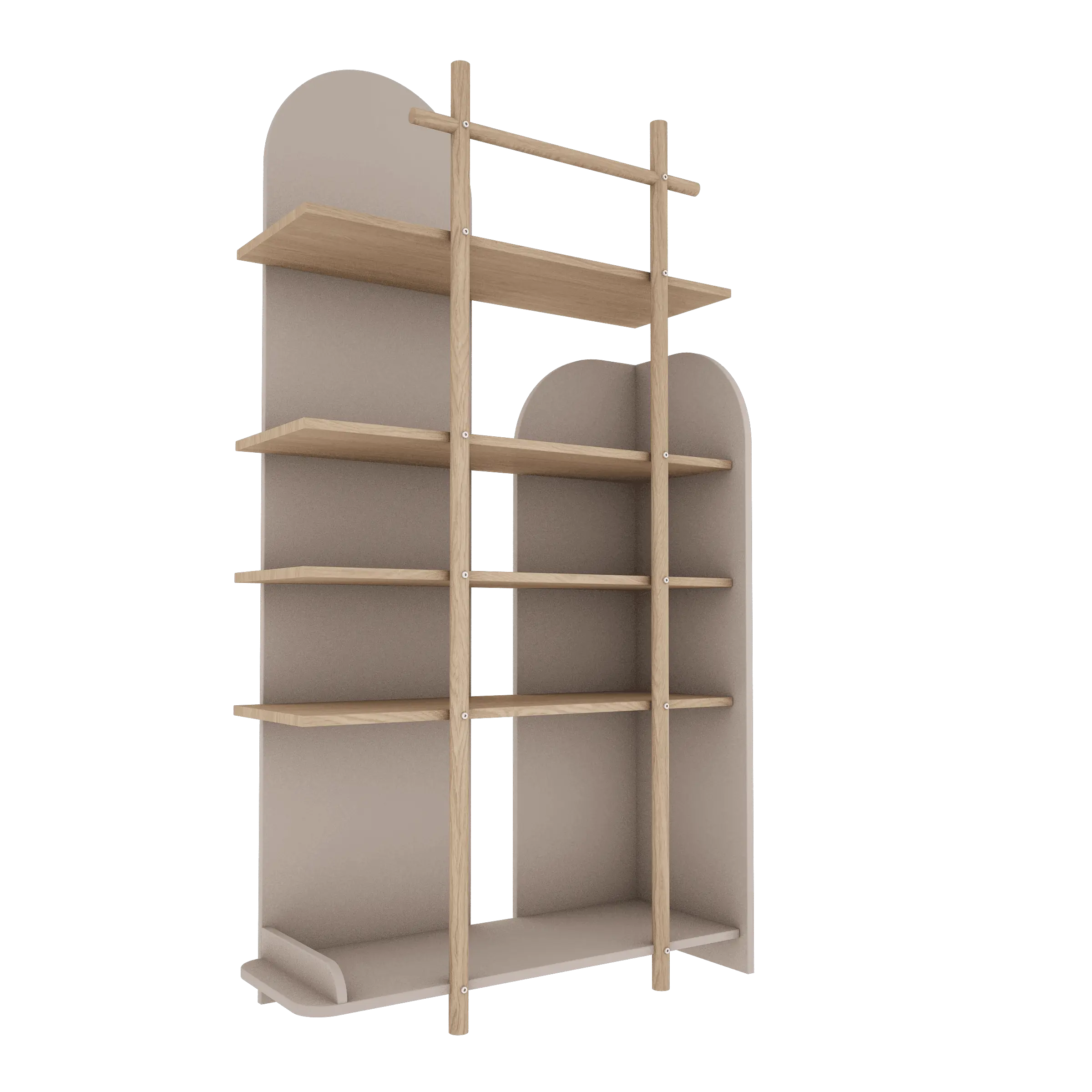 Wąski regał z kolekcji Bloom to więcej niż zwykły mebel – to połączenie ponadczasowego designu, praktyczności i wysokiej estetyki. Jego smukła konstrukcja sprawia, że idealnie pasuje nawet do niewielkich przestrzeni, nie przytłaczając aranżacji. Subtelne połączenie koloru kaszmiru i dekoru dębowego wnosi do pomieszczenia ciepło i naturalną harmonię, która sprzyja relaksowi i koncentracji – szczególnie ważnym w dziecięcych pokojach.