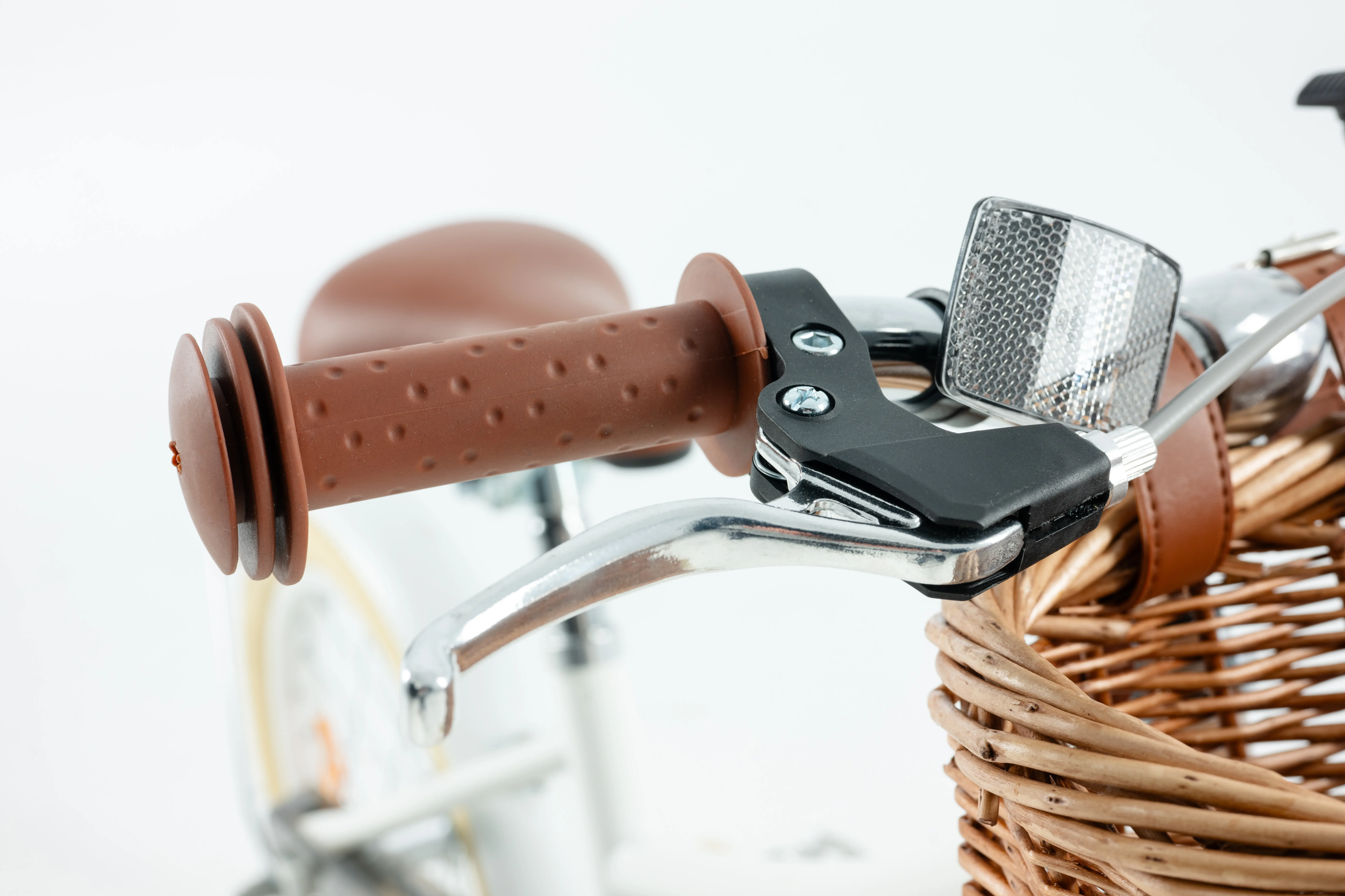 Wyposażenie dodatkowe: błotniki, dzwonek, wiklinowy koszyk, odblaski, gumowane kółka boczne