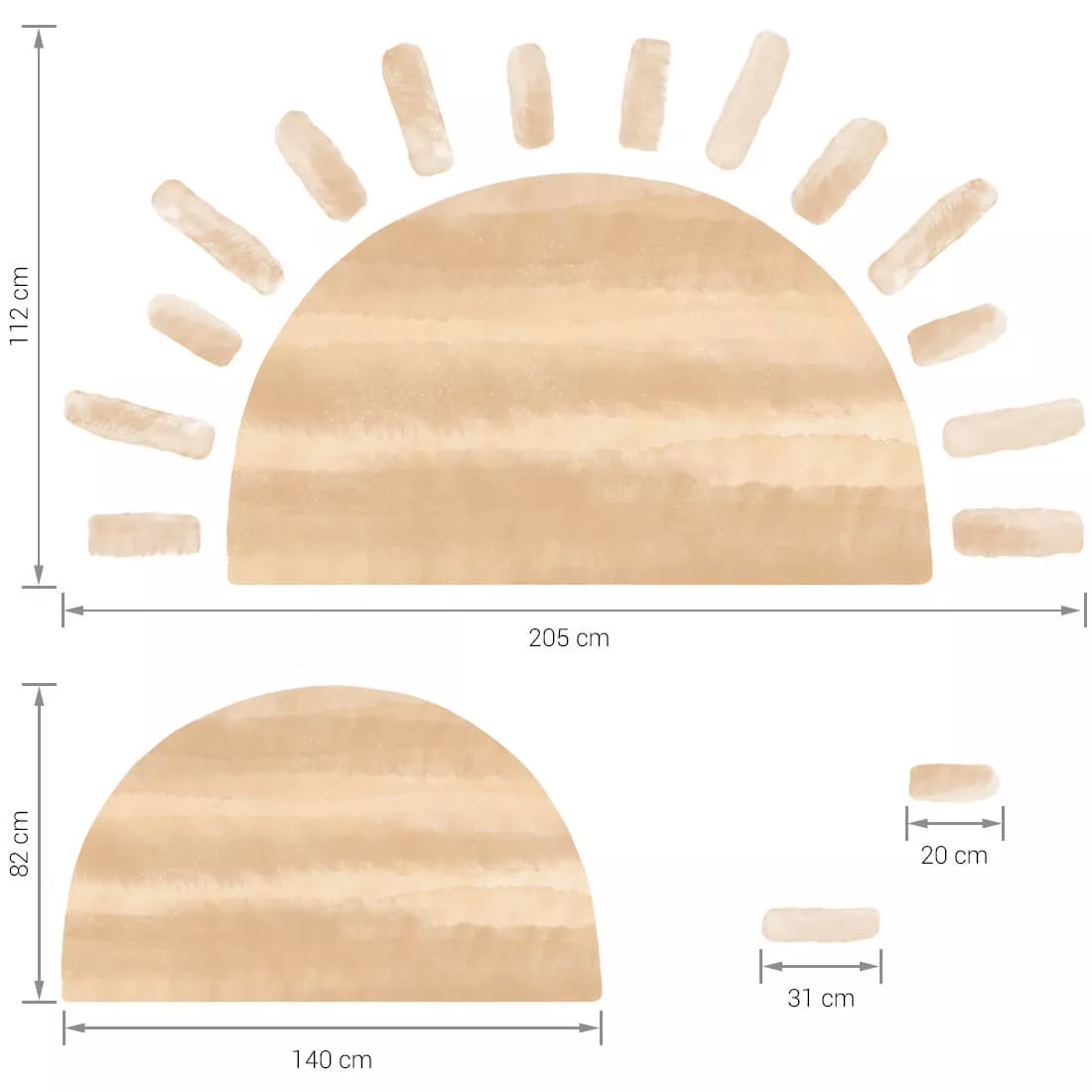 To oryginalny pomysł na piękną dekorację pokoju, która jednocześnie ochroni ściany przed zabrudzeniami. Świetnie sprawdzi się za łóżkiem czy w kąciku zabaw, a w razie potrzeby można umyć ją wilgotną szmatką. Ta urocza naklejka przedstawia wspaniałe, beżowe słońce, otoczone promieniami, które stworzą magiczną atmosferę w pokoju Twojego dziecka. To idealny sposób na dodanie uroku i radości do przestrzeni, jednocześnie wprowadzając subtelny element naturalnego piękna.