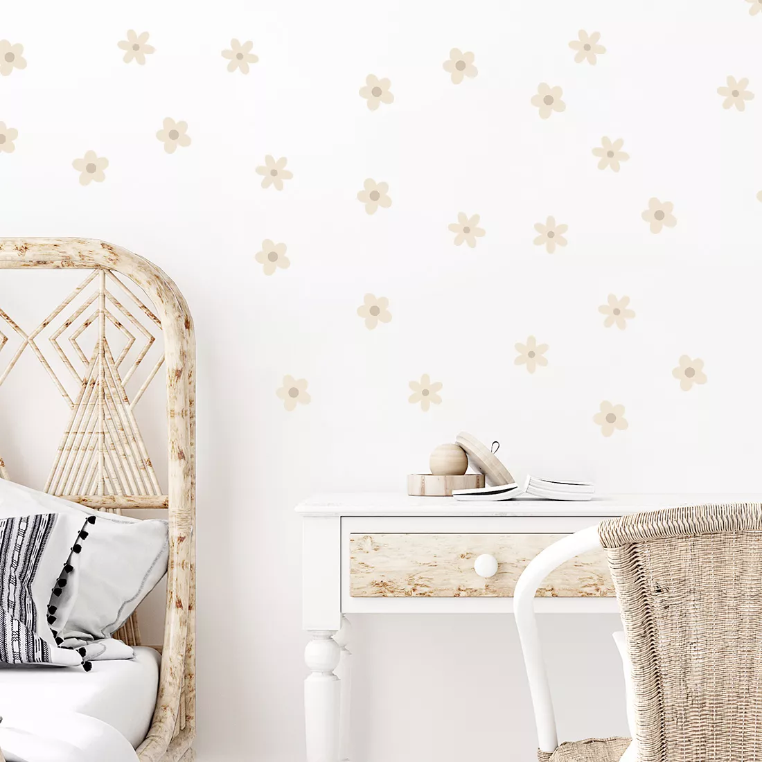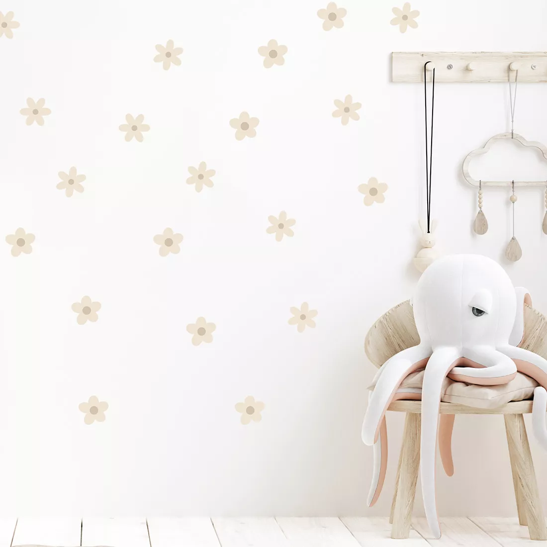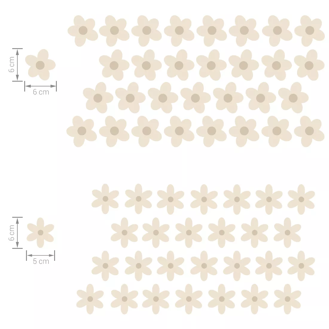 To oryginalny pomysł na wykorzystanie pustej powierzchni. Naklejki stokrotki można dowolnie układać na ścianie i tworzyć efekt tapety. Kwiatki występują w dwóch kształtach i dwóch rozmiarach. Pozwalają na swobodną aranżację wnętrza dziecięcego pokoju wedle własnej wizji. Świetnie sprawdzą się w pomieszczeniu wymagającym drobnego odświeżenia.