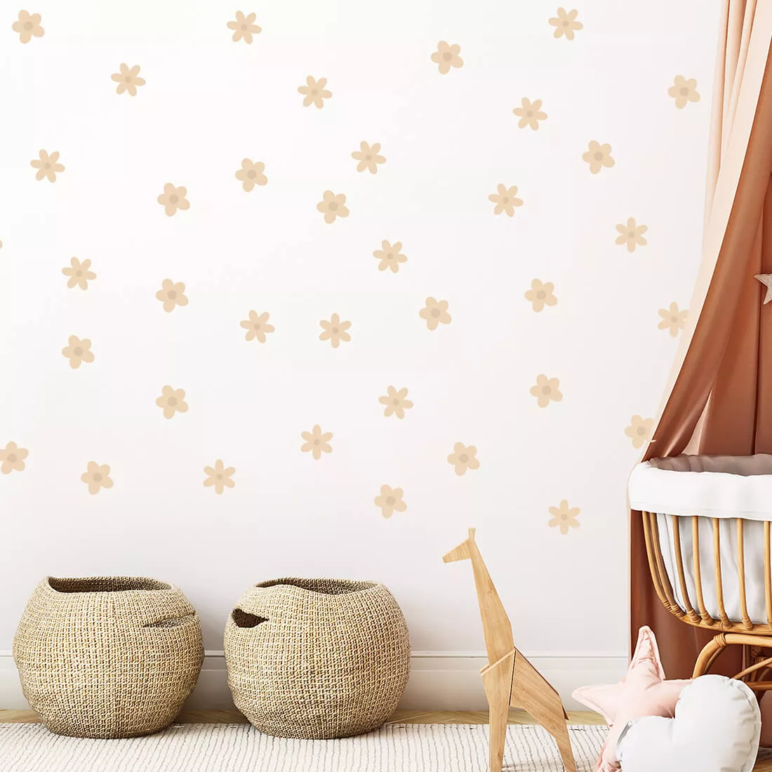 To oryginalny pomysł na wykorzystanie pustej powierzchni. Naklejki stokrotki można dowolnie układać na ścianie i tworzyć efekt tapety. Kwiatki występują w dwóch kształtach i dwóch rozmiarach. Pozwalają na swobodną aranżację wnętrza dziecięcego pokoju wedle własnej wizji. Świetnie sprawdzą się w pomieszczeniu wymagającym drobnego odświeżenia.