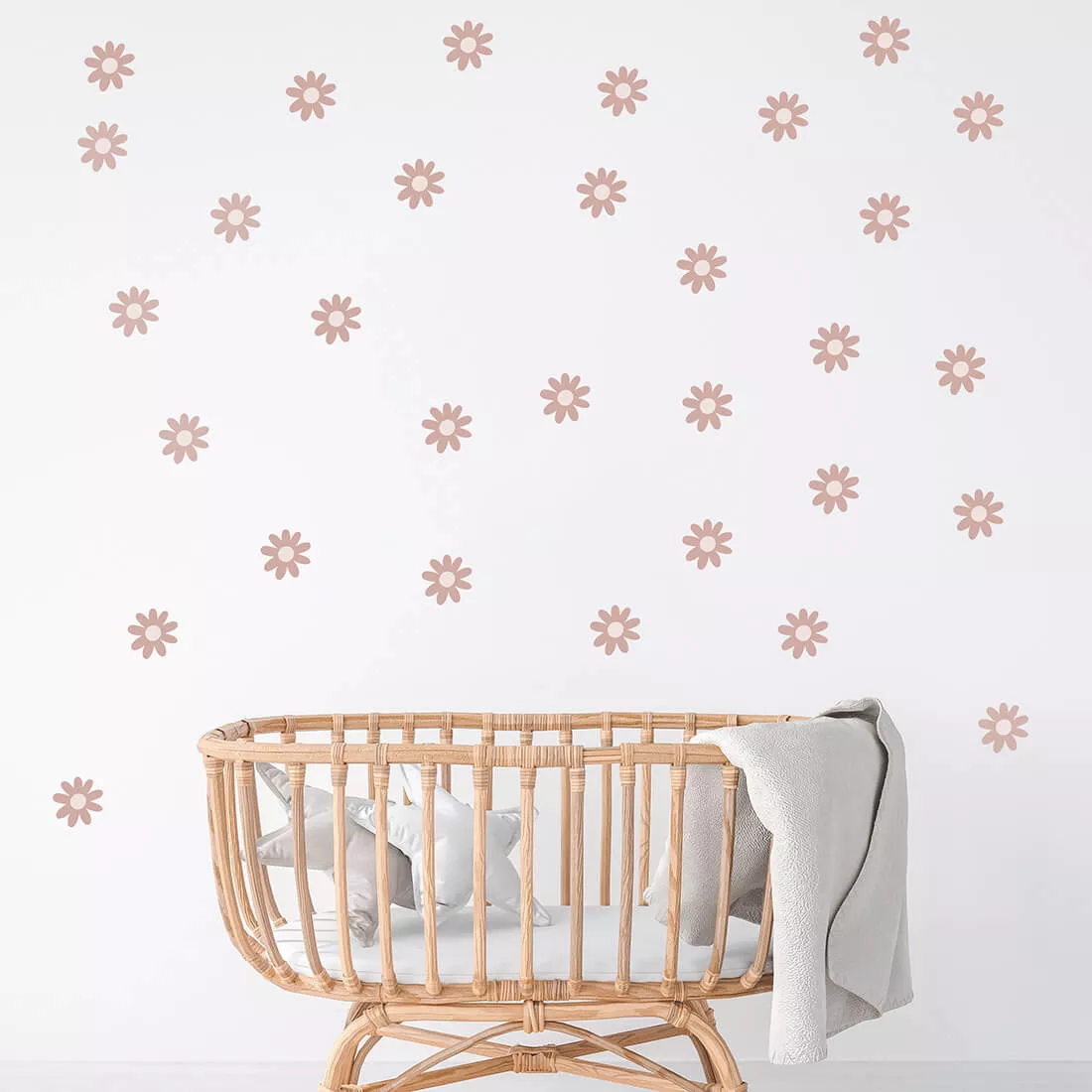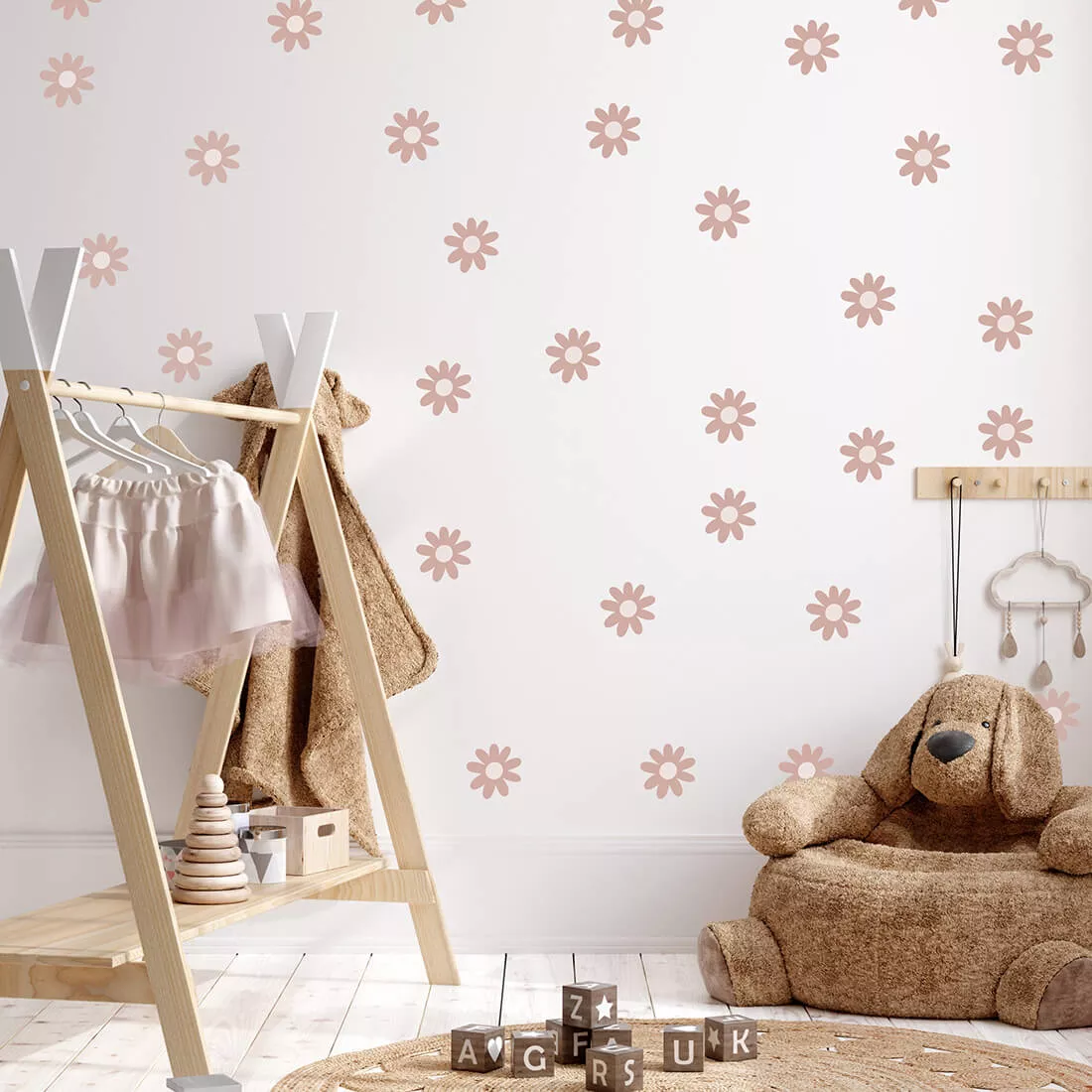 to oryginalny pomysł na wykorzystanie pustej powierzchni. Naklejki stokrotki można dowolnie układać na ścianie i tworzyć efekt tapety. Kwiatki występują w jednym kształcie i jednym rozmiarze. Pozwalają na swobodną aranżację wnętrza dziecięcego pokoju wedle własnej wizji. Świetnie sprawdzą się w pomieszczeniu wymagającym drobnego odświeżenia.