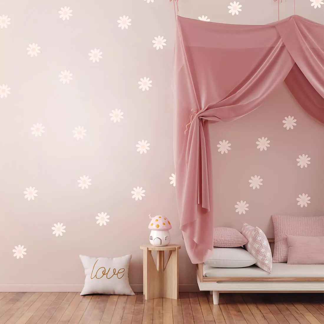 Można dowolnie układać na ścianie i tworzyć efekt tapety. Kwiatki występują w jednym kształcie i jednym rozmiarze. Pozwalają na swobodną aranżację wnętrza dziecięcego pokoju wedle własnej wizji. Świetnie sprawdzą się w pomieszczeniu wymagającym drobnego odświeżenia.