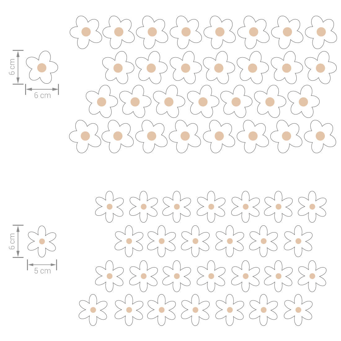 stokrotki (31 szt. / ok. 6×6 cm), stokrotki (28 szt. / ok. 5×6 cm).