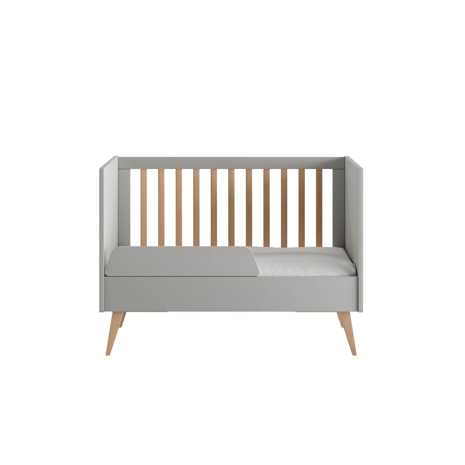 Ciekawym i funkcjonalnym rozwiązaniem jest również możliwość zdjęcia jednego boku – łóżeczko rośnie wraz z dzieckiem. Dzięki zamontowaniu barierki chronimy malucha przez wypadnięciem, dając mu jednocześnie swobodę korzystania z łóżeczka.