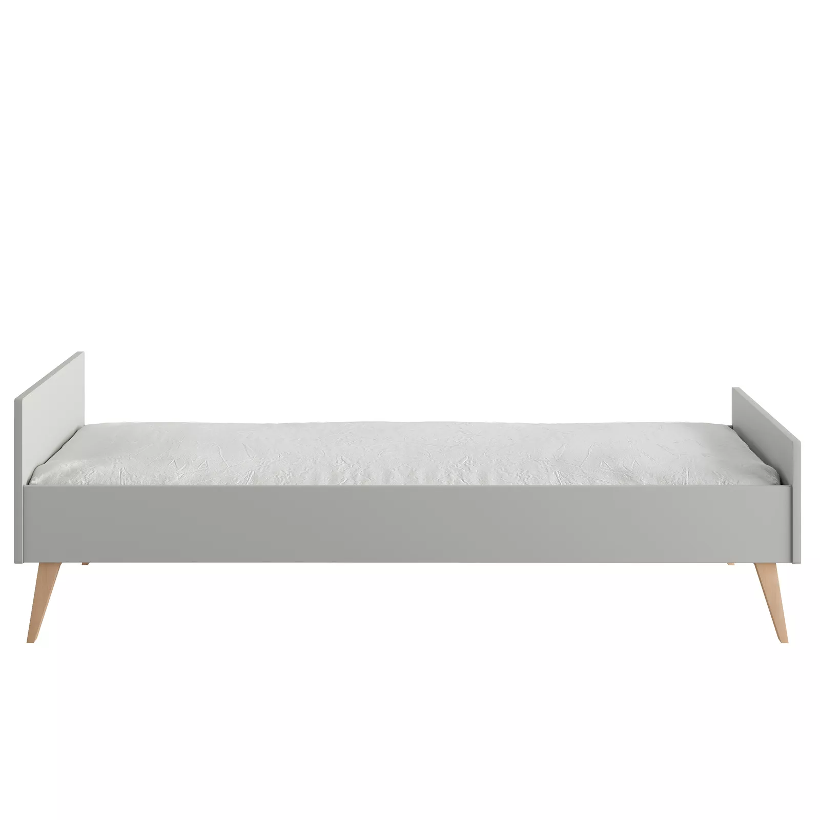Łóżko wykonane z litego drewna bukowego lakierowanego (nóżki) i lakierowanej płyty MDF, stelaż wykonany z drewna sosnowego.