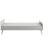 Łóżko wykonane z litego drewna bukowego lakierowanego (nóżki) i lakierowanej płyty MDF, stelaż wykonany z drewna sosnowego.