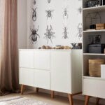 Regał wysoki z kolekcji Swing posiada 4 półki oraz jedną szufladę – jest ona wyposażona w wysokiej jakości prowadnicę z hamulcem i samodotykiem.