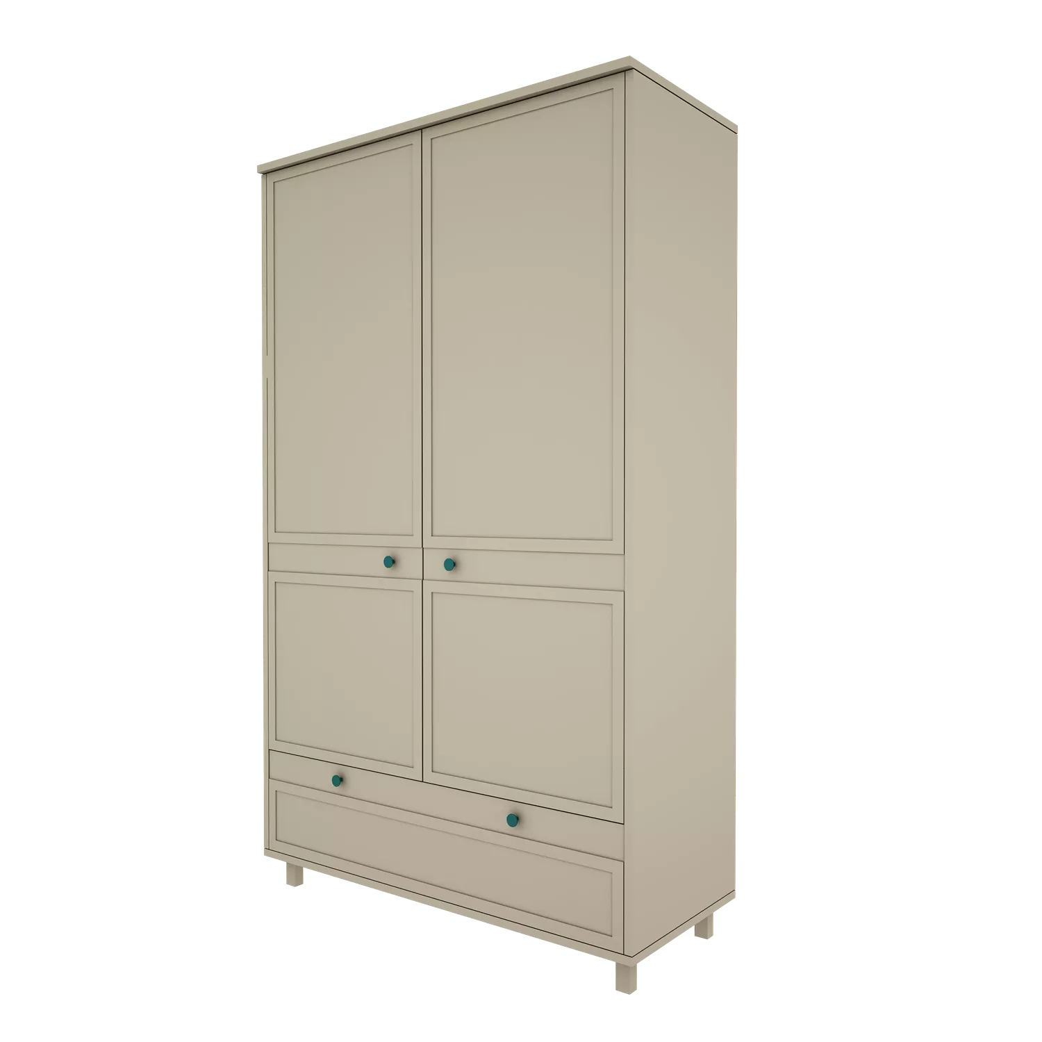 Szafa posiada przestrzeń przeznaczoną do wieszania ubrań, dostosowaną do ubranek dla noworodka jak i starszego dziecka, przestrzeń z półkami oraz pojemną szufladę. Szuflada posiada wewnątrz przegrodę dzięki czemu utrzymanie porządku będzie jeszcze łatwiejsze. Szuflada oraz drzwi wyposażone są w bardzo dobrej jakości okucia z samodomykiem.