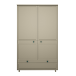 Szafa posiada przestrzeń przeznaczoną do wieszania ubrań, dostosowaną do ubranek dla noworodka jak i starszego dziecka, przestrzeń z półkami oraz pojemną szufladę. Szuflada posiada wewnątrz przegrodę dzięki czemu utrzymanie porządku będzie jeszcze łatwiejsze. Szuflada oraz drzwi wyposażone są w bardzo dobrej jakości okucia z samodomykiem.