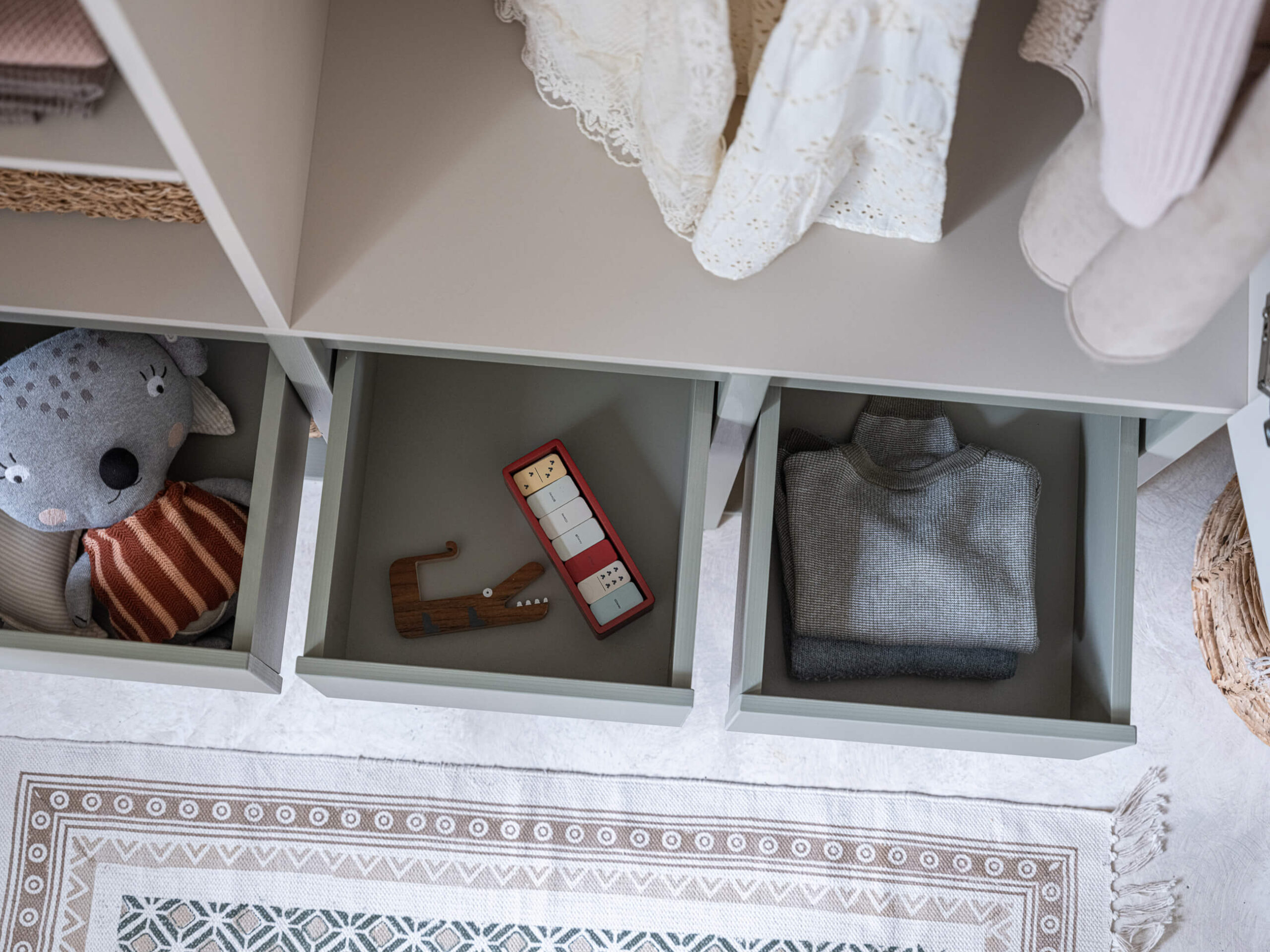 płyta meblowa, mdf, drewno sosnowe (nogi) – płyty produkowana zgodnie z normą EN71/3 – norma dotycząca mebli dziecięcych oraz zabawek