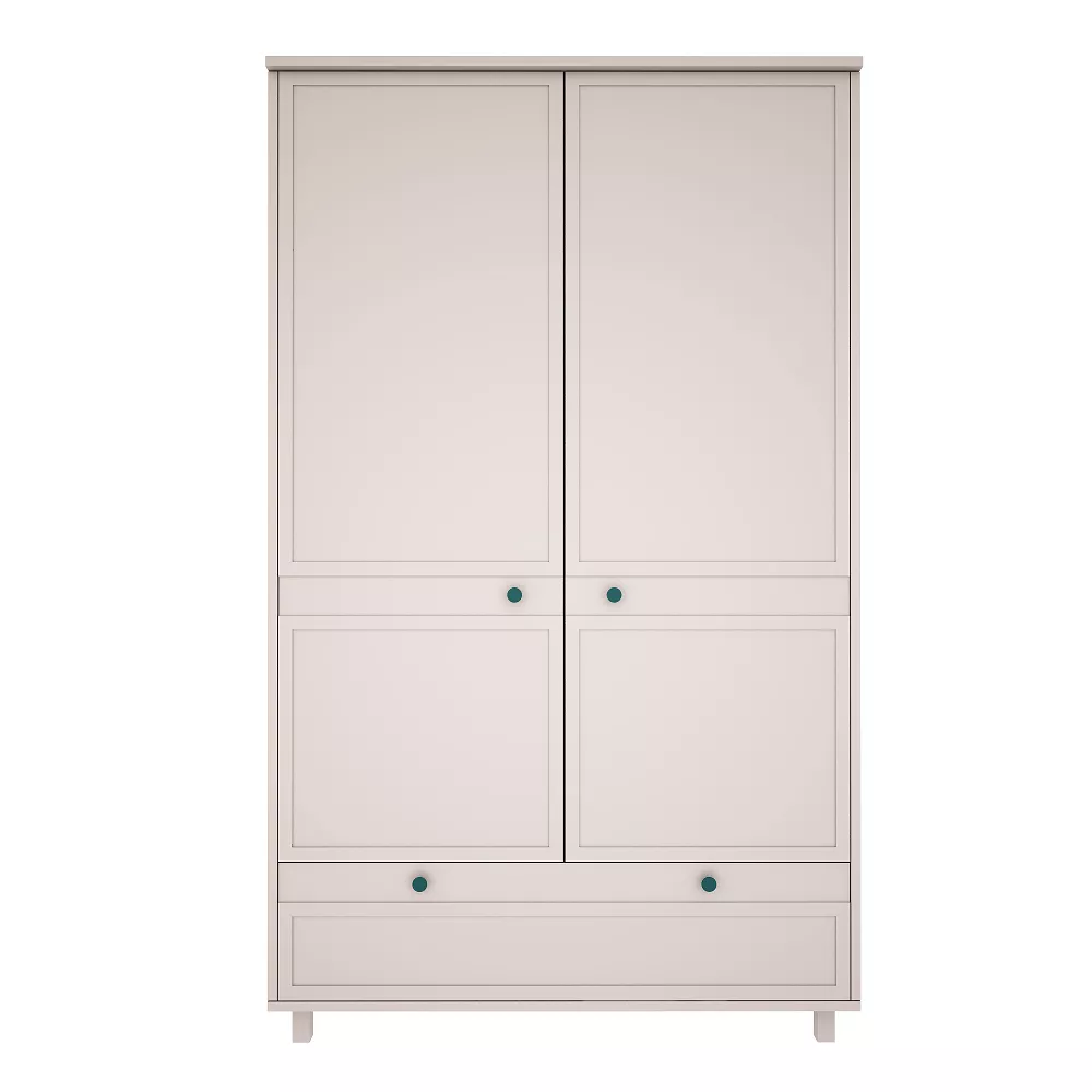 Szafa posiada przestrzeń przeznaczoną do wieszania ubrań, dostosowaną do ubranek dla noworodka jak i starszego dziecka, przestrzeń z półkami oraz pojemną szufladę. Szuflada posiada wewnątrz przegrodę dzięki czemu utrzymanie porządku będzie jeszcze łatwiejsze. Szuflada oraz drzwi wyposażone są w bardzo dobrej jakości okucia z samodomykiem.