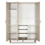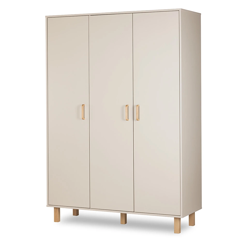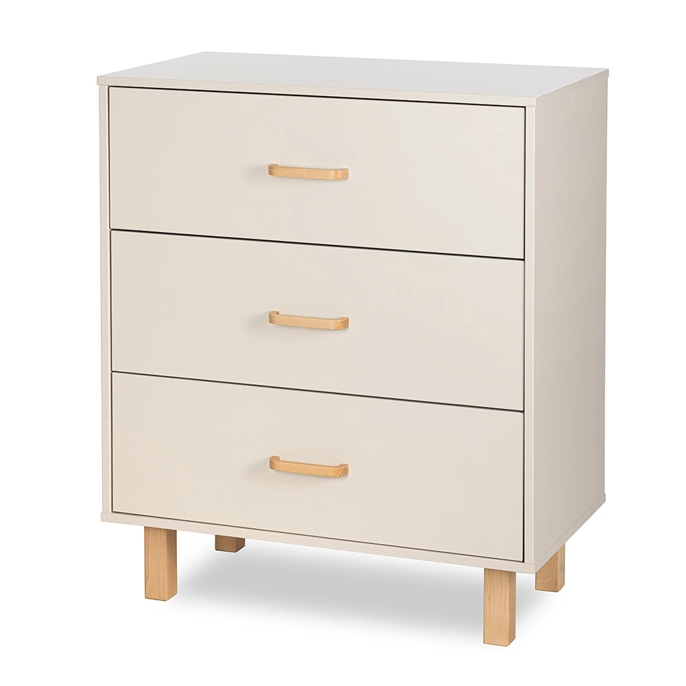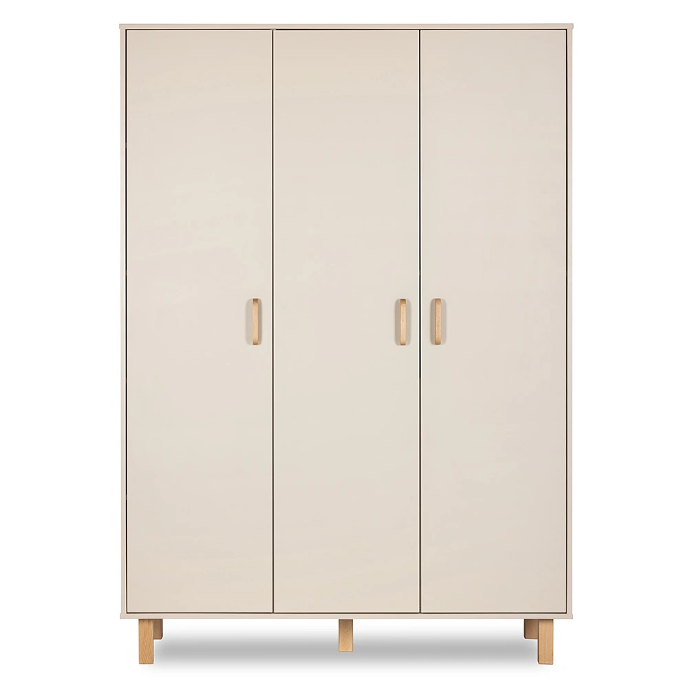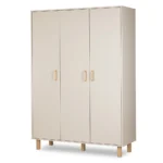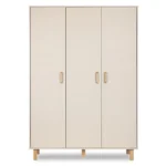 Eleganckie detale z drewna bukowego – uchwyty oraz wysokie nóżki – nadają szafie lekkości i naturalnego charakteru. Kolor szampan-buk doskonale wpisuje się w nowoczesne i skandynawskie aranżacje, tworząc przytulną przestrzeń dla dziecka.
