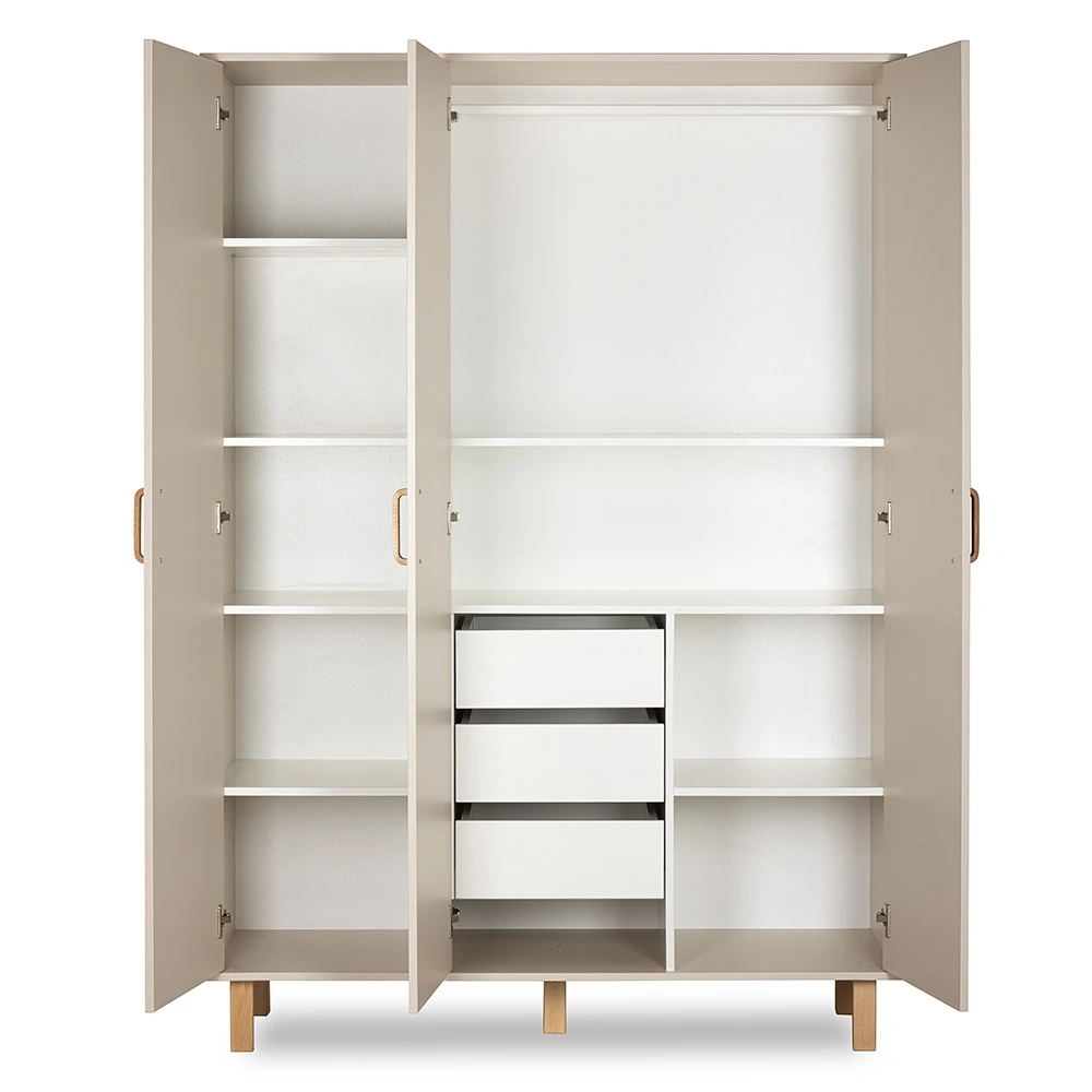 Szafa 3-segmentowa LAURA została zaprojektowana z myślą o rosnących potrzebach dziecka i wygodzie rodziców. Jej przemyślane wnętrze zapewnia doskonałą organizację – znajdziesz tu aż trzy pojemne szuflady, praktyczny drążek na ubrania oraz liczne półki, które pomieszczą zarówno ubranka niemowlęce, jak i garderobę starszego dziecka.
