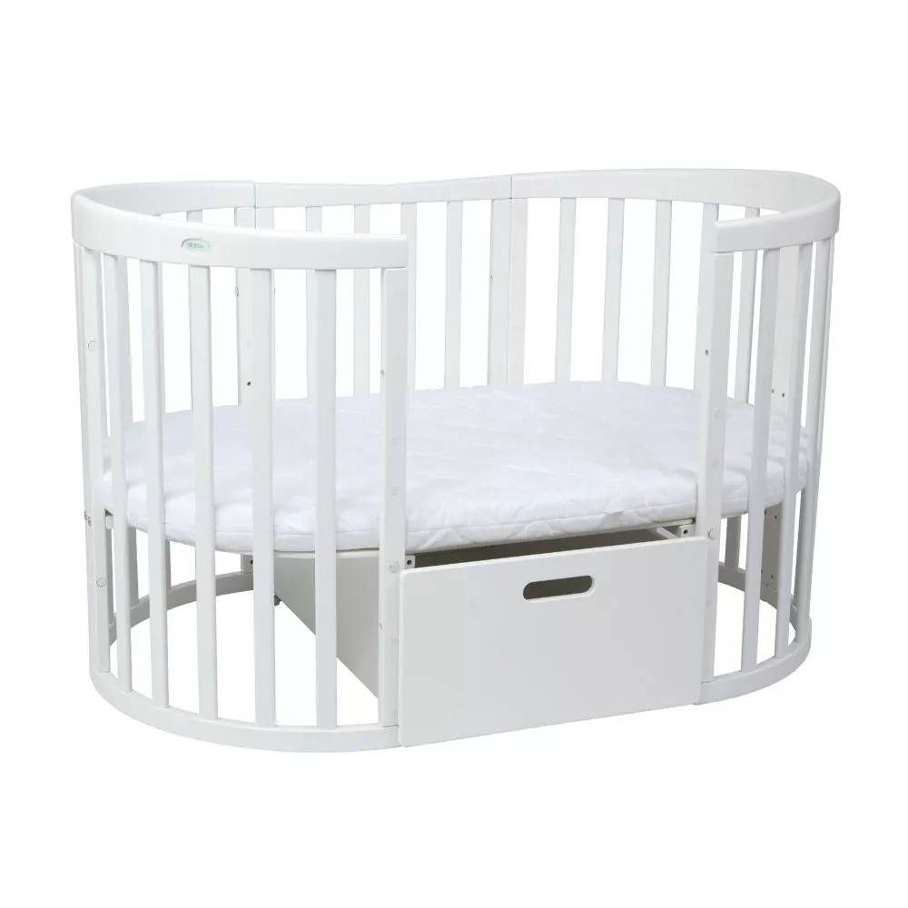 Szuflada pasuje zarówno do łóżeczka klasycznego 7w1, jak i do owalnego łóżeczka 7w1.