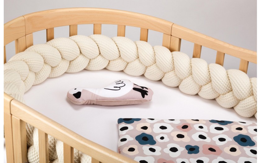 Ochraniacz na szczebelki do łóżeczka z pokrowcem. Warkocz z 3 pasm to ciekawa alternatywa dla klasycznych ochraniaczy do łóżeczka. Świetnie sprawdza się w okresie, gdy Twoje dziecko zaczyna samodzielnie się obracać, czy też podejmuje pierwsze próby siadania.
