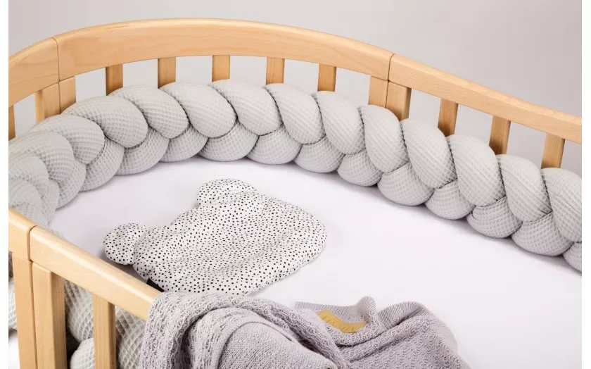 Ochraniacz na szczebelki do łóżeczka z pokrowcem. Warkocz z 3 pasm to ciekawa alternatywa dla klasycznych ochraniaczy do łóżeczka. Świetnie sprawdza się w okresie, gdy Twoje dziecko zaczyna samodzielnie się obracać, czy też podejmuje pierwsze próby siadania.
