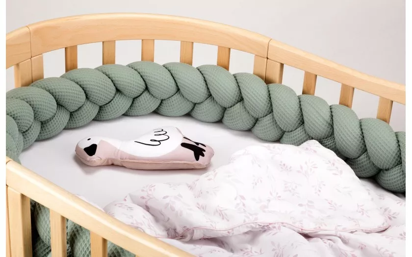 Ochraniacz na szczebelki do łóżeczka z pokrowcem. Warkocz z 3 pasm to ciekawa alternatywa dla klasycznych ochraniaczy do łóżeczka. Świetnie sprawdza się w okresie, gdy Twoje dziecko zaczyna samodzielnie się obracać, czy też podejmuje pierwsze próby siadania.