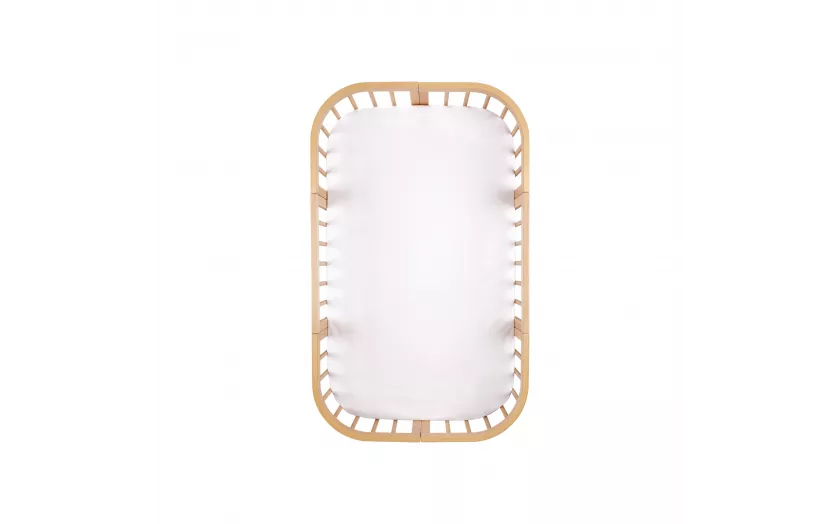 Prześcieradło uszyte jest z gładkiej, wysokogatunkowej bawełny jersey w kolorze białym. Bawełna jest przyjemna w dotyku i miękka, co jest niezwykle ważne dla komfortu delikatnej skóry dziecka. Zastosowany w bawełnie splot płócienny i odpowiednio dobrana gęstość włókien sprawia, że materiał przepuszcza powietrze.