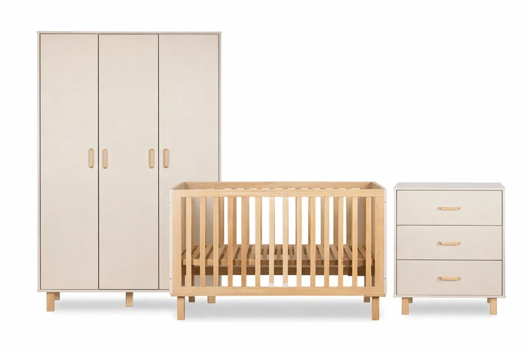 Zestaw mebli niemowlęcych LAURA szampan 3 el. to starannie zaprojektowana kolekcja, która obejmuje: łóżeczko dziecięce, komodę oraz pojemną szafę. Każdy element został stworzony z myślą o codziennym komforcie rodziców i bezpieczeństwie dziecka.