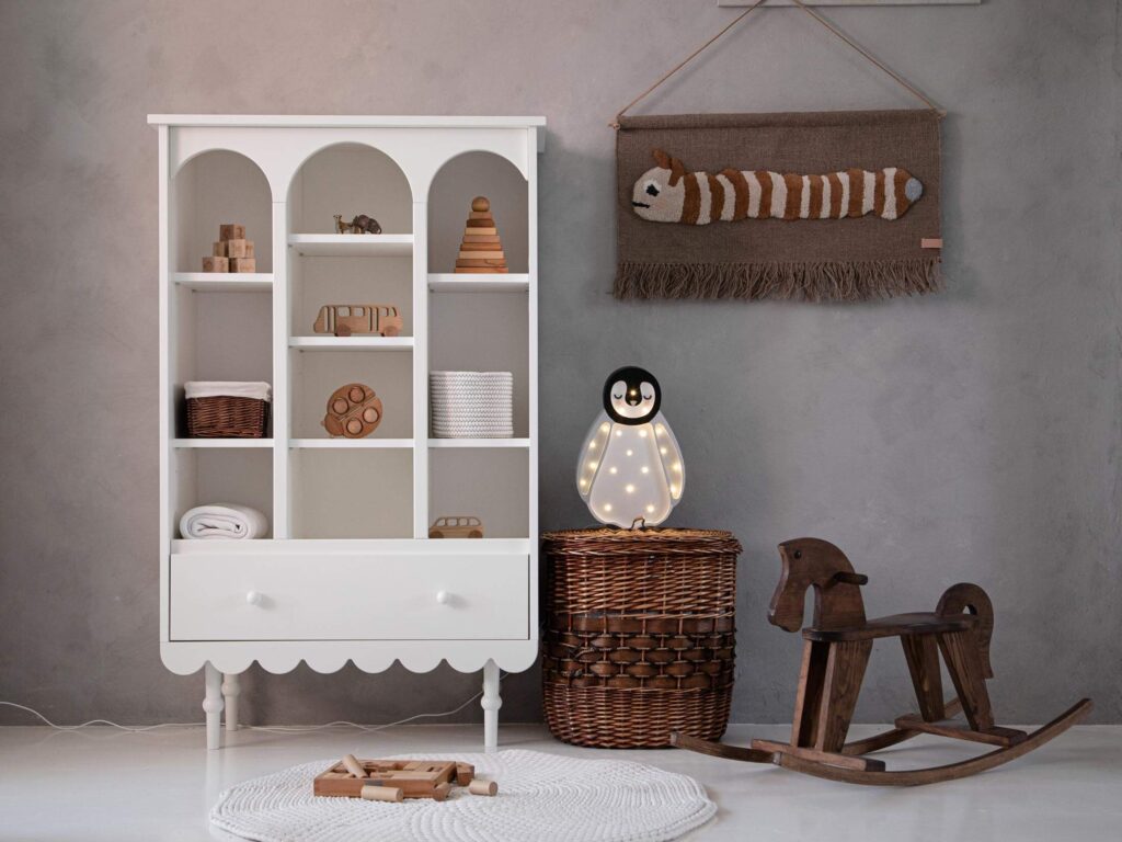 Dzięki przemyślanej konstrukcji regał Babushka pozwala na uporządkowanie książek, zabawek oraz dekoracji, jednocześnie dbając o estetykę wnętrza.